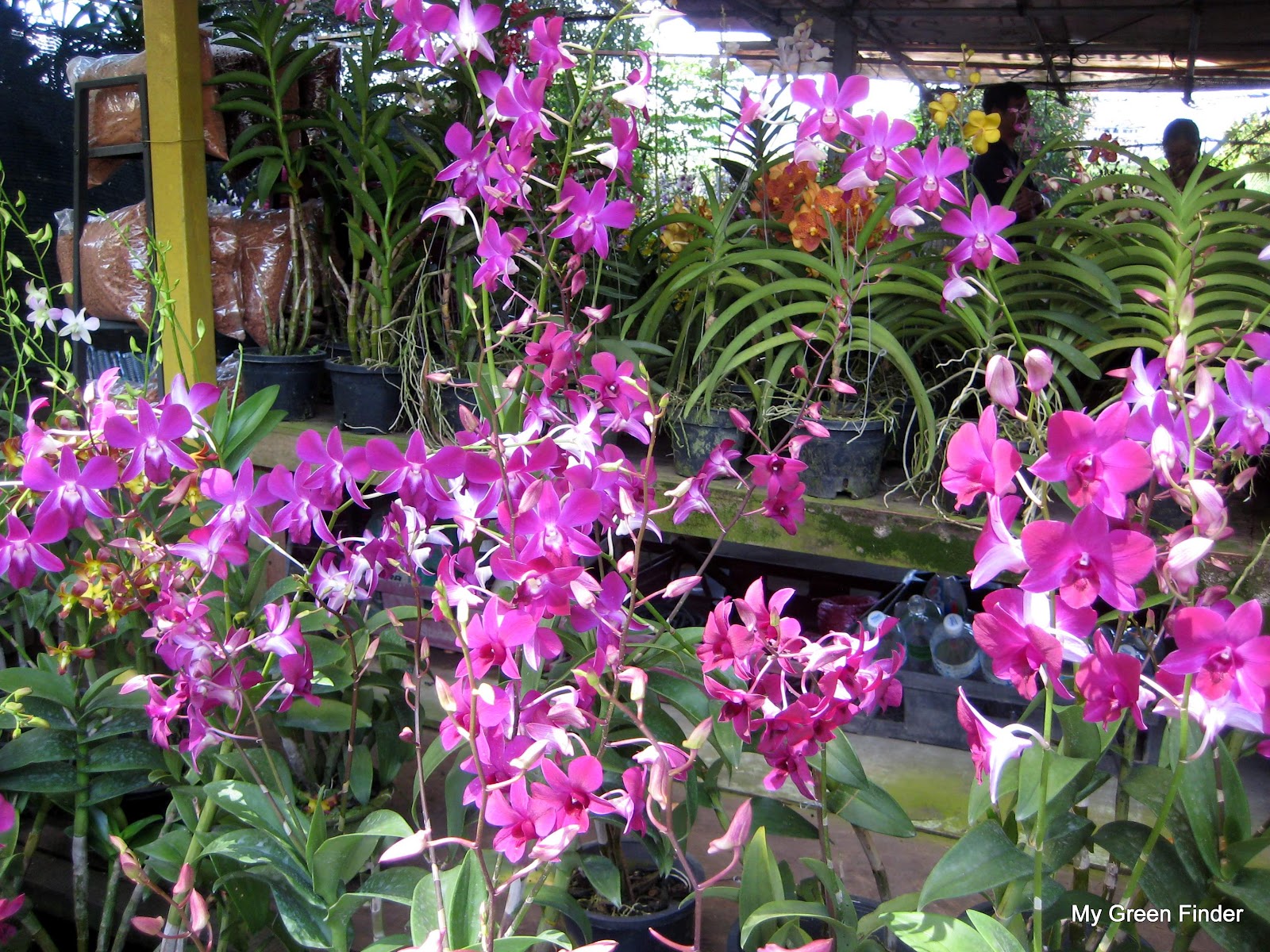I was attracted to the neat- and cool-looking orchid pots and baskets displayed along the road at the central section of this nursery bazaar known as the Sungai Buloh Leprosy Centre. The nursery is however situated on the opposite side of the road where the pots and basket are placed.